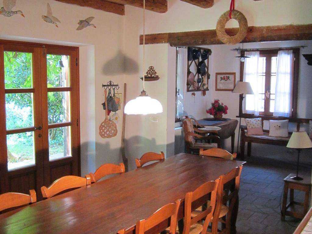 Al piano terra si trova un ampio soggiorno arredato con mobili provenzali, con un bel camino veneto e la cucina. Il soffitto con travi a vista, il pavimento in cotto naturale, i dettagli e la cura dei particolari ne fanno un ambiente rustico ma esclusivo e ricercato .